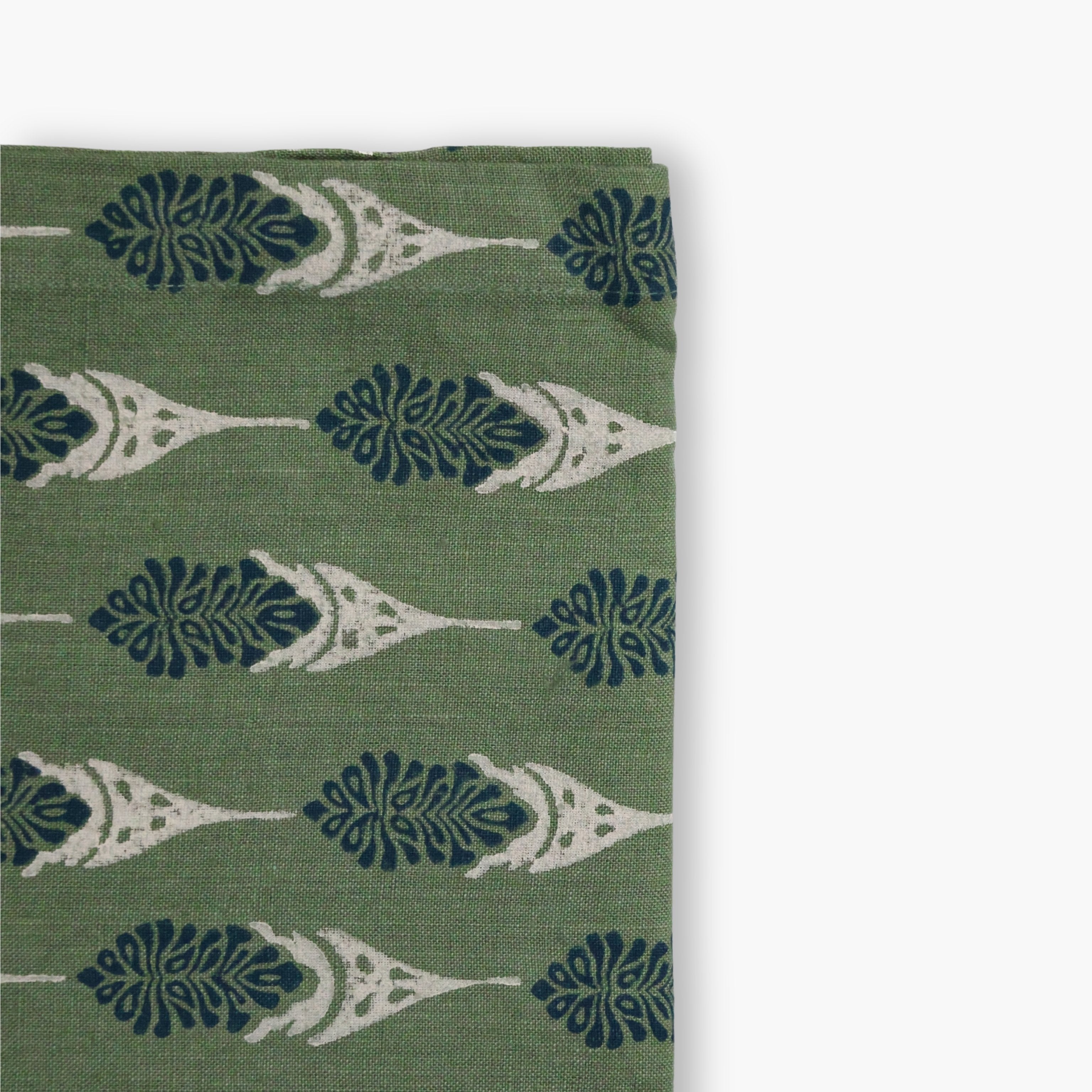 Inspired by the larkspur flower often seen in Mughal artistry, the Bahaar Table Runner celebrates India’s rich design traditions. Hand-block printed with delicate motifs in ink blue and ivory on an oil green base, it creates an elegant foundation for your tablescapes. Crafted in pure linen and finished by hand, this runner is designed to add timeless charm and versatility to both everyday dining and special gatherings.