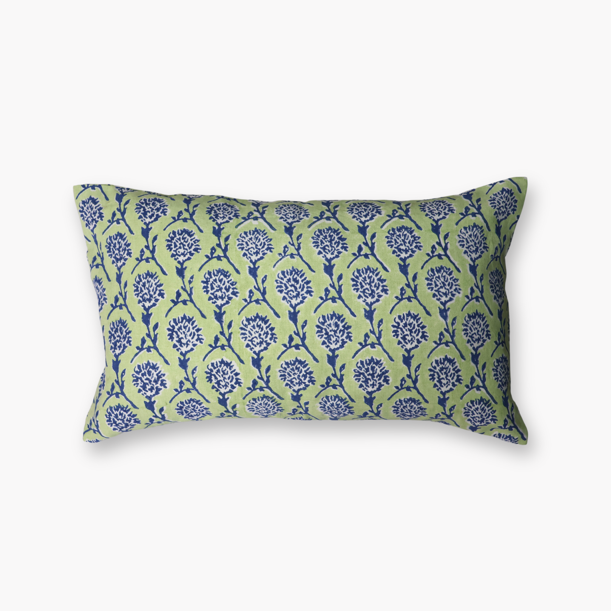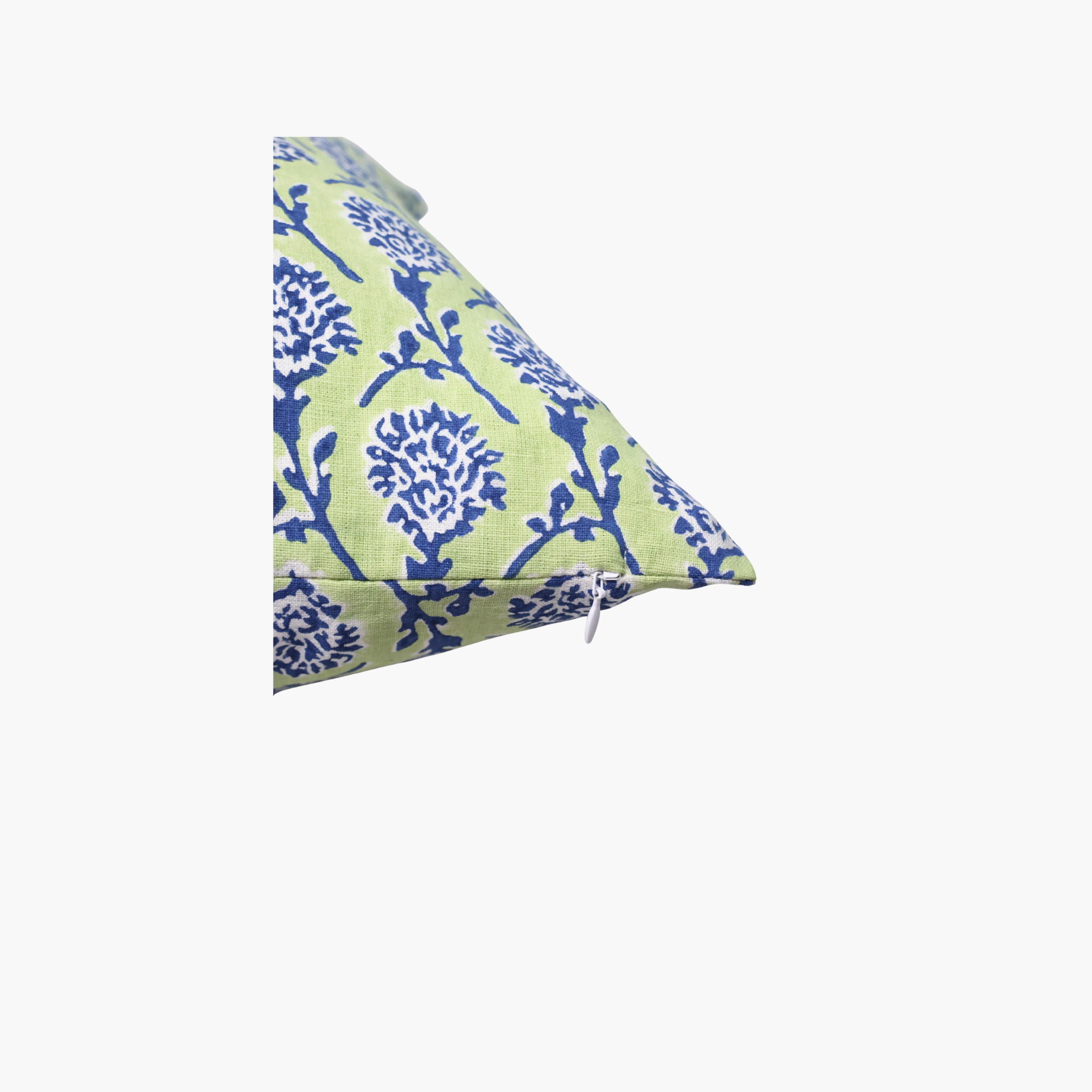 Nikhar - Lumbar Linen Throw Pillow Cover - Lily Green