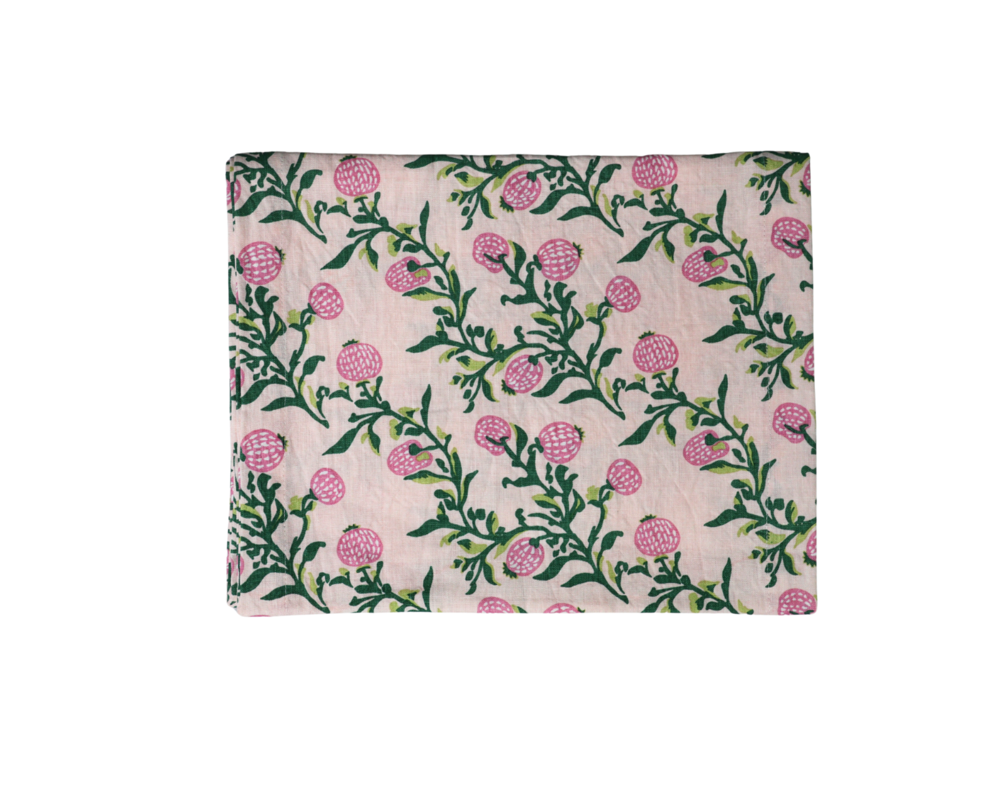 Rasa - Pure Linen Hand-Printed Table Runner - Pastel Pink