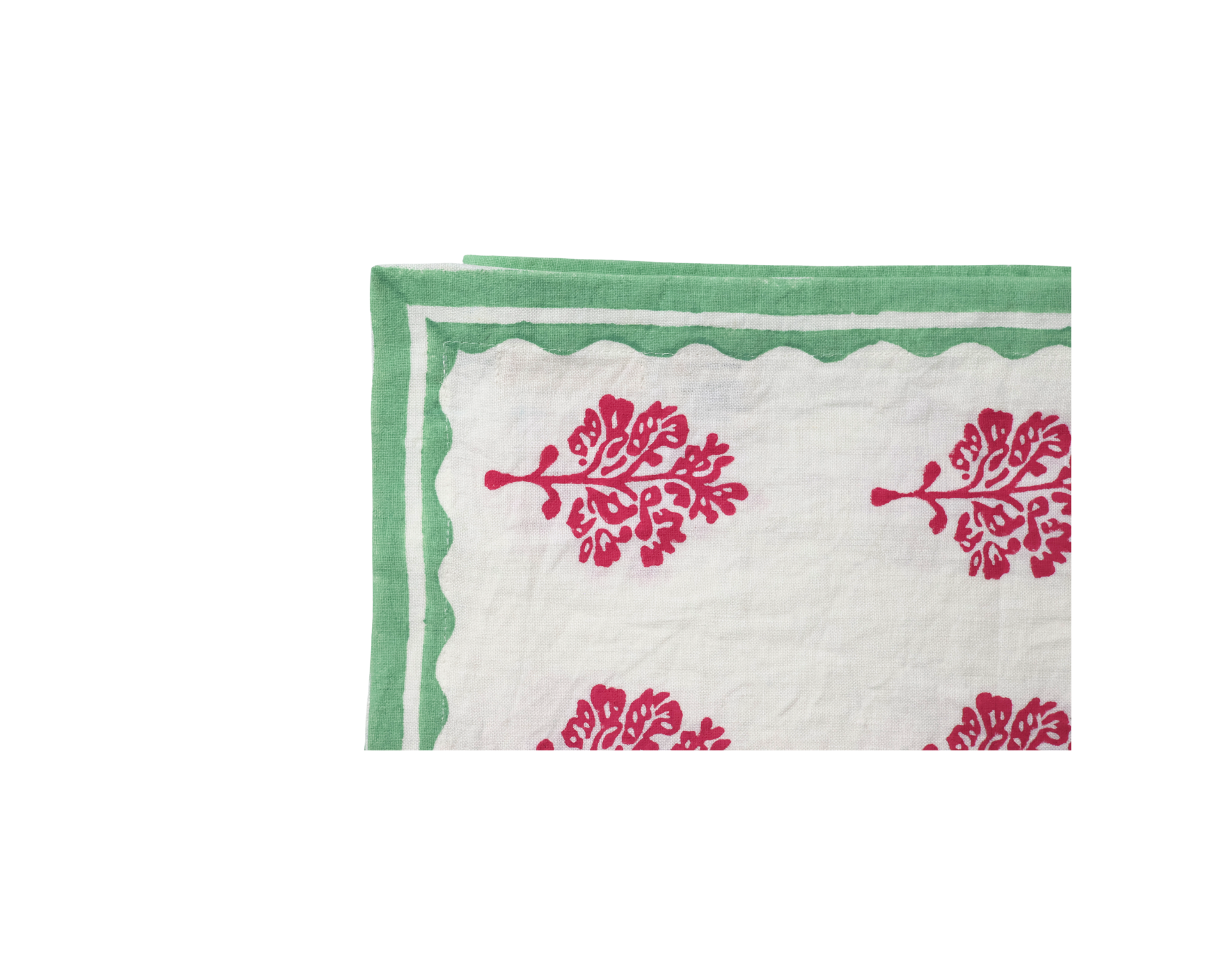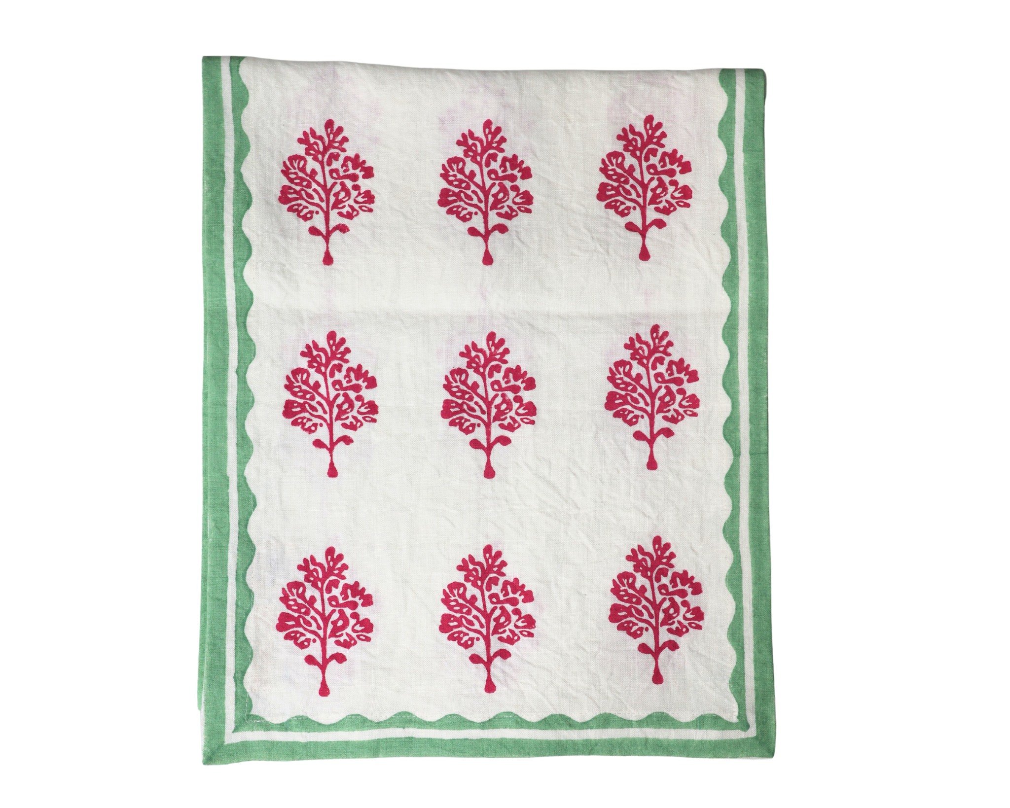 Sara - Pure Linen Hand-Printed Table Runner - Pink & Pastel Green