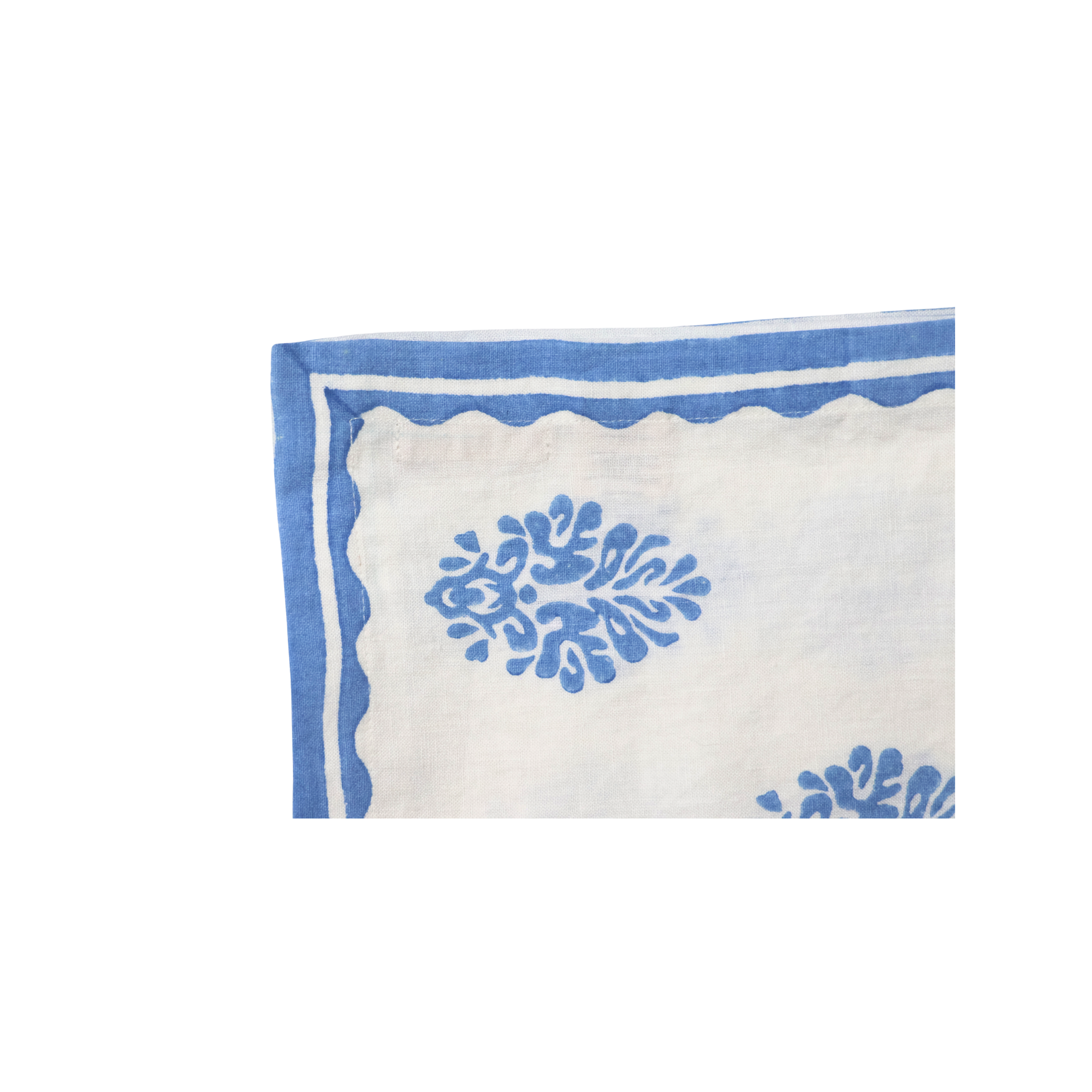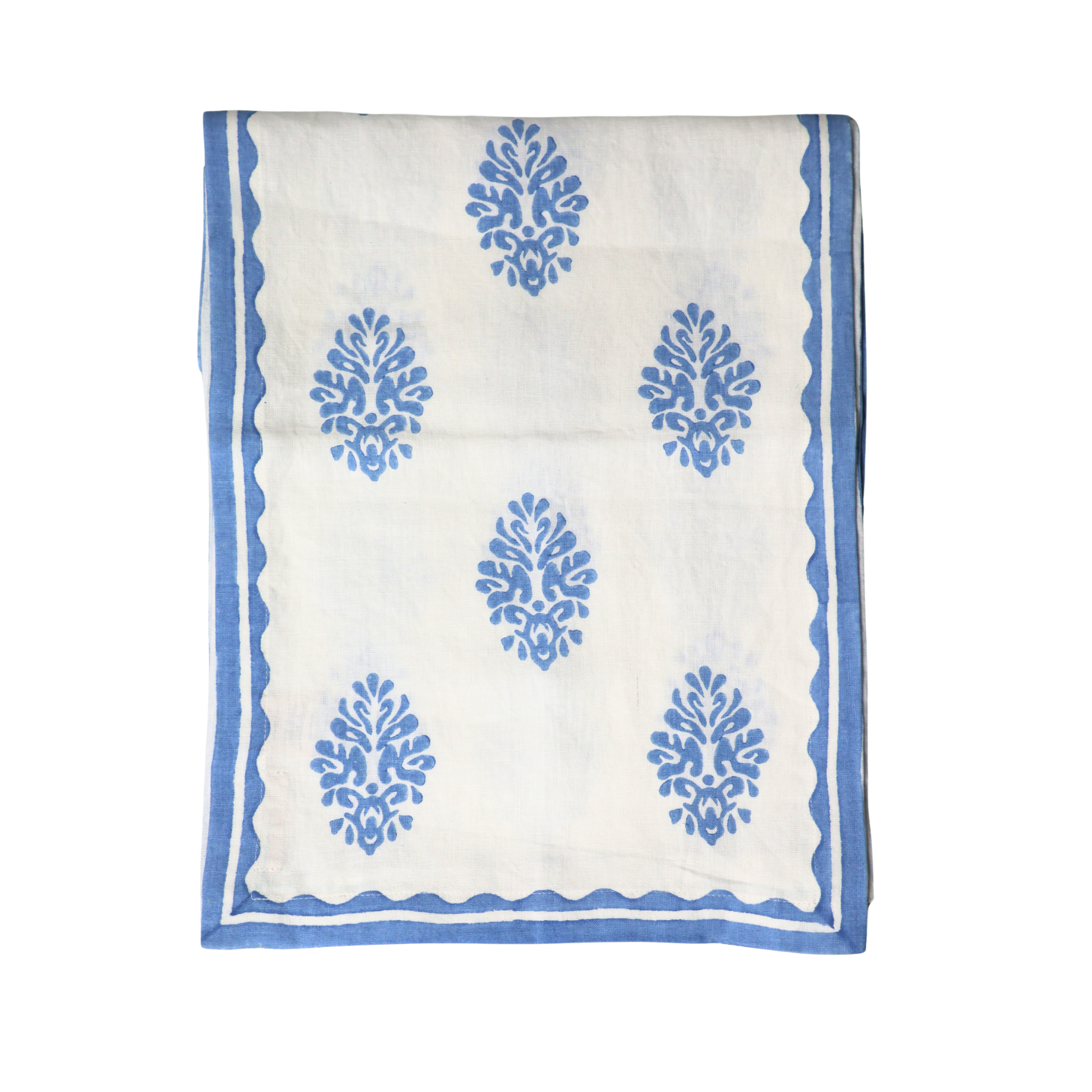 Nila - Pure Linen Hand-Printed Table Runner - Pastel Blue