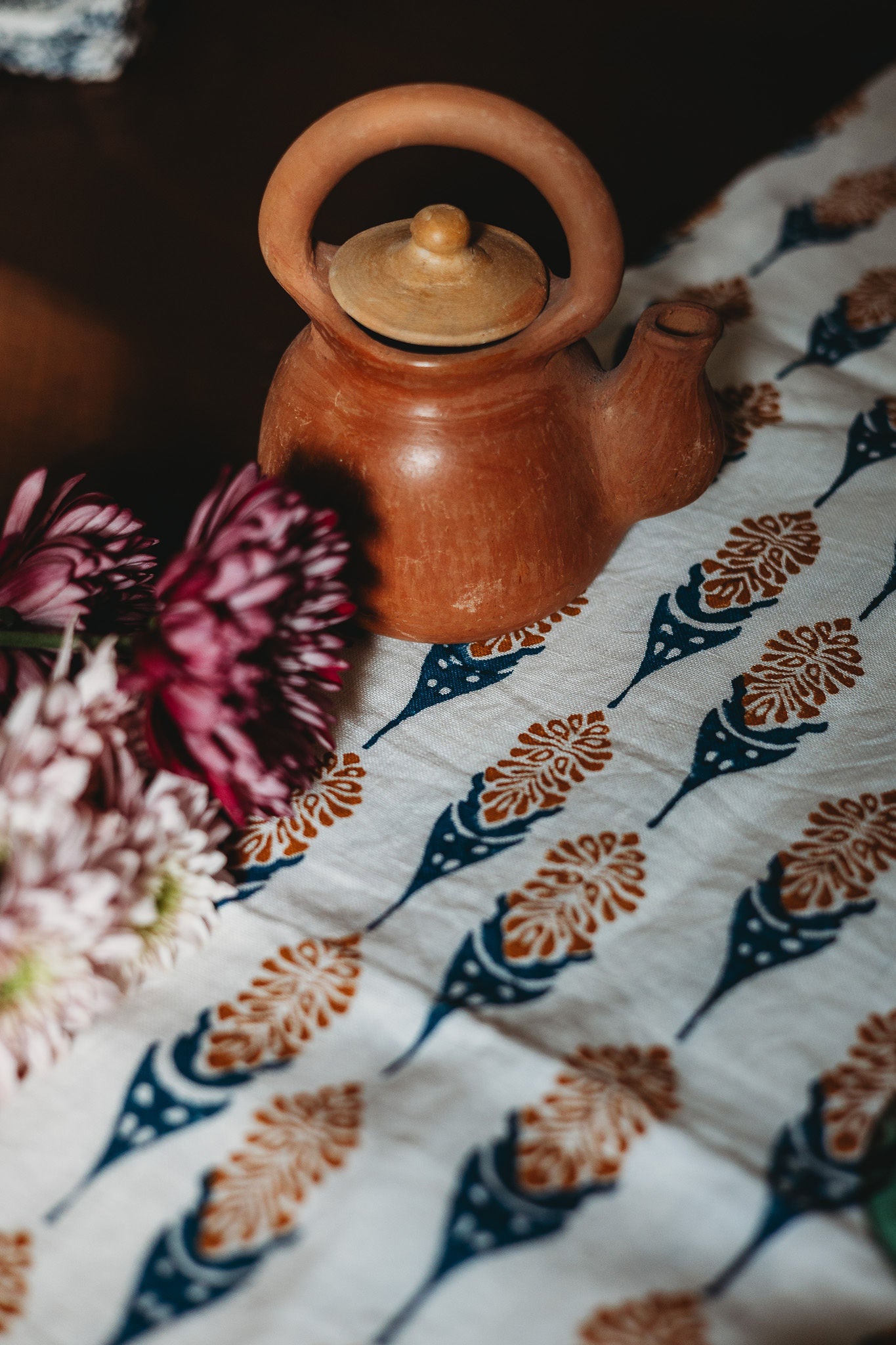 Bahaar Hand Printed Table Runner - Ginger & Blue