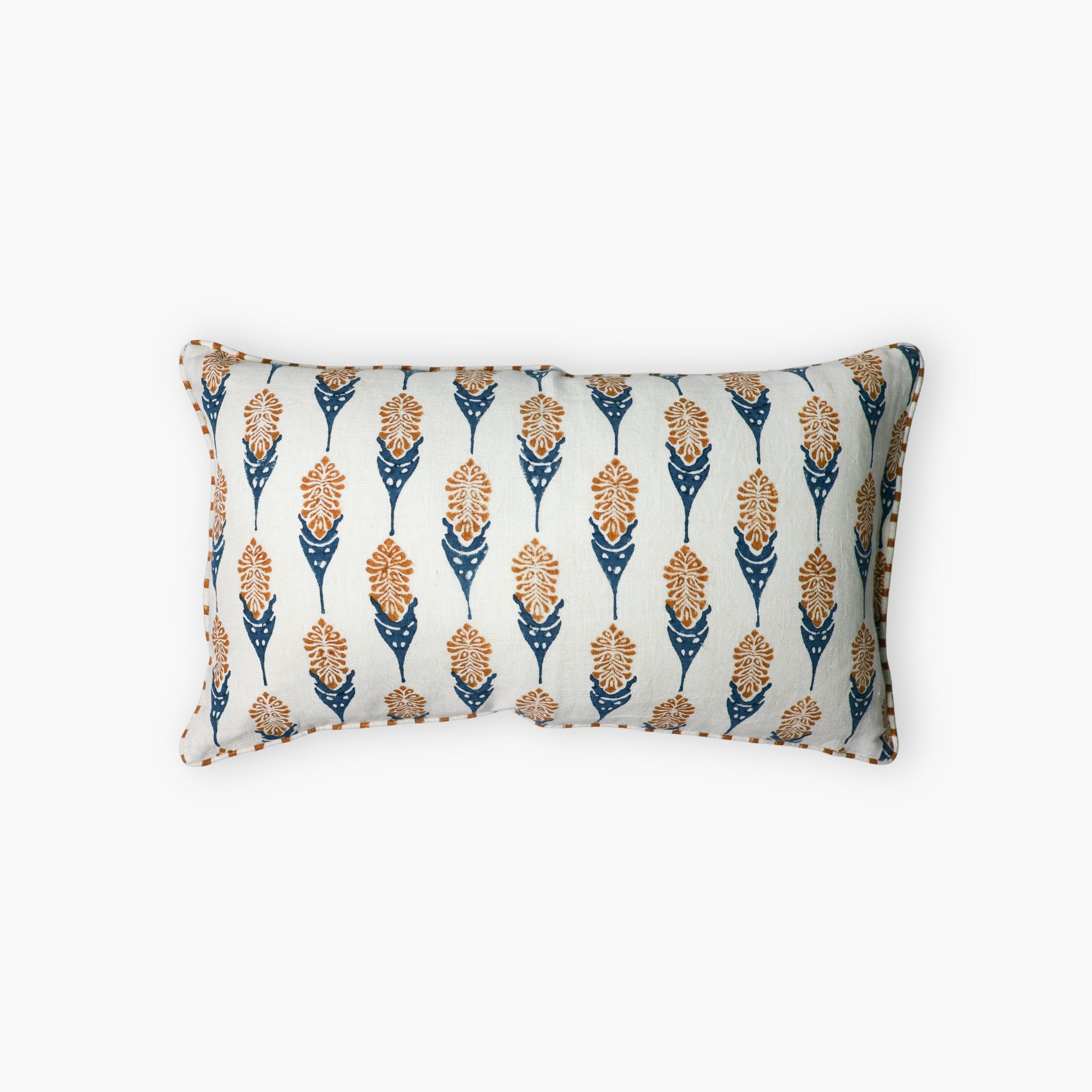 Bahaar Lumbar Throw Pillow Cover - Ginger & Blue