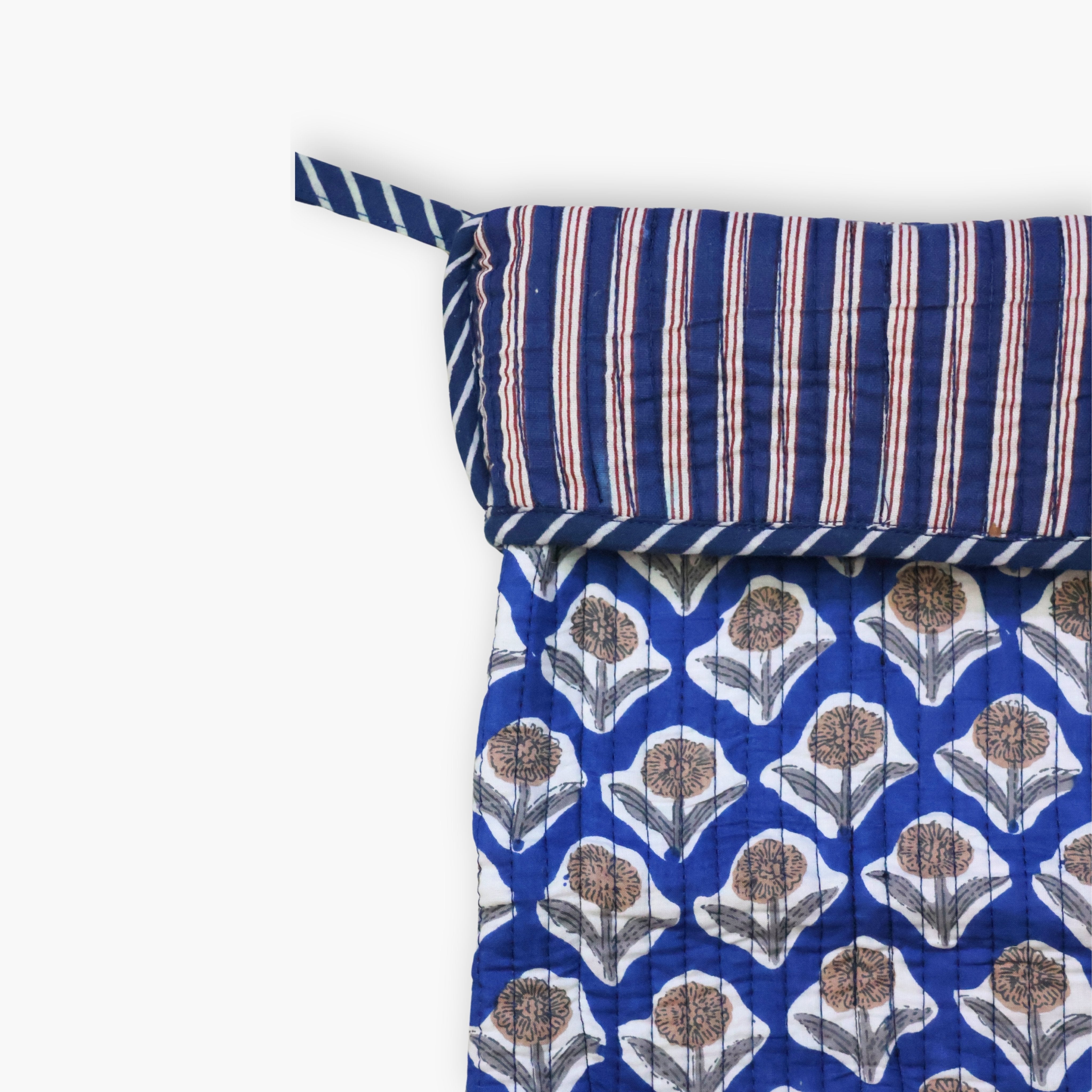 Block-Printed Quilted Christmas Stocking - Midnight Blue