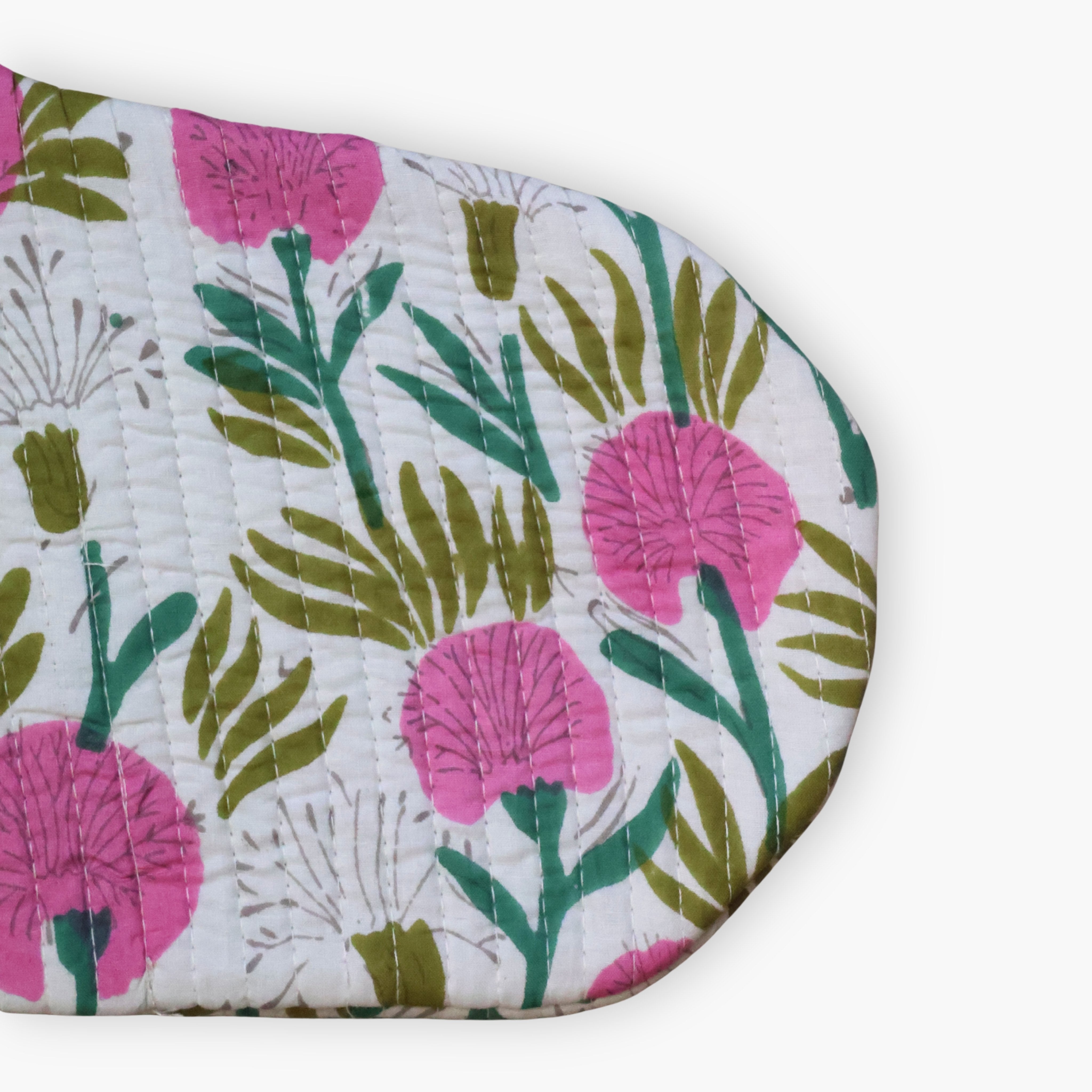 Block-Printed Quilted Christmas Stocking - Pink Cherry