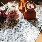 Nikhar Linen Hand-Printed Runner - Azure Blue