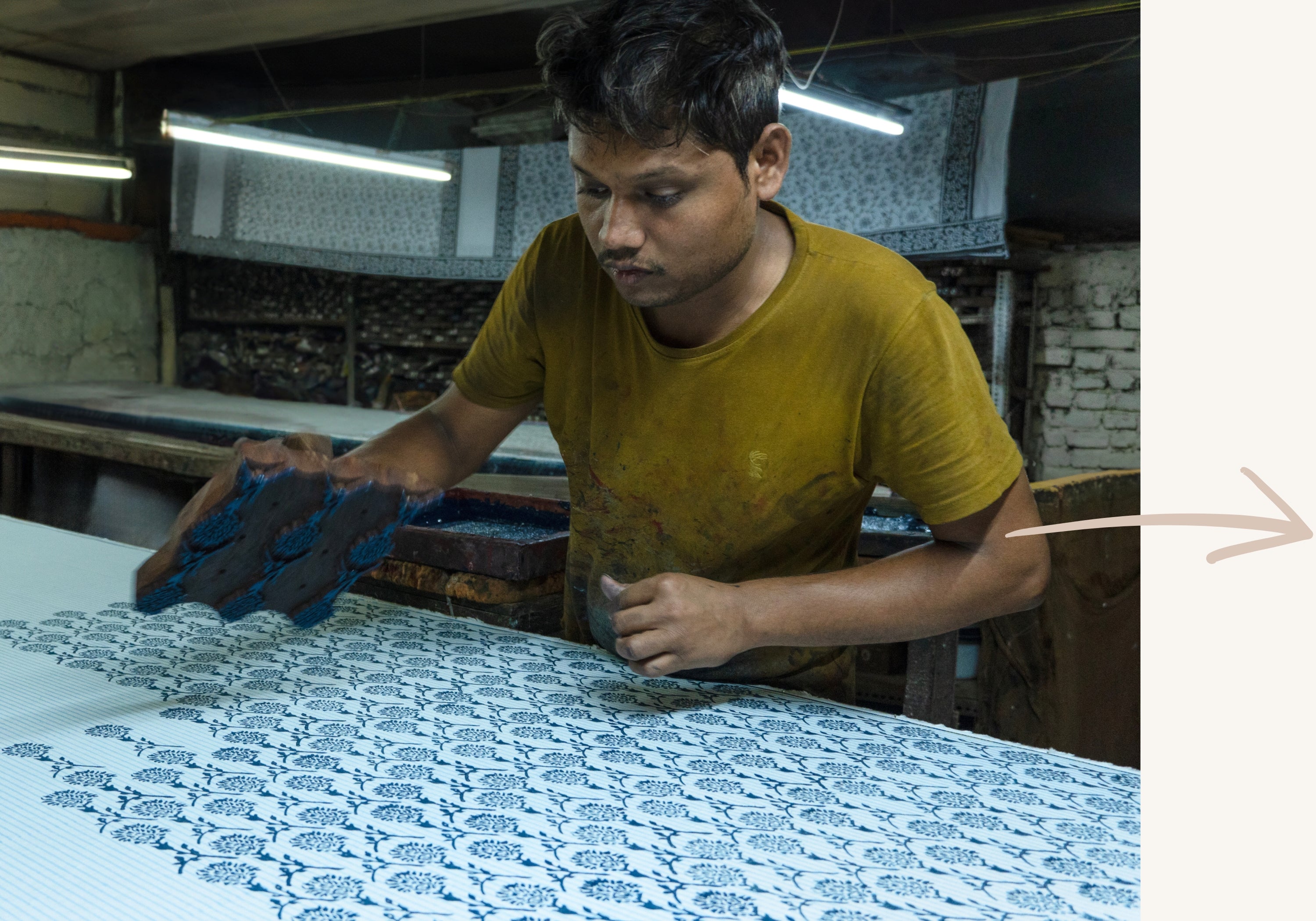 We work with India's age-old handcrafted techniques to create our pieces. Currently, we’ve started with hand-block printing, screen printing, embroidery, and weaving—each done by skilled artisans.